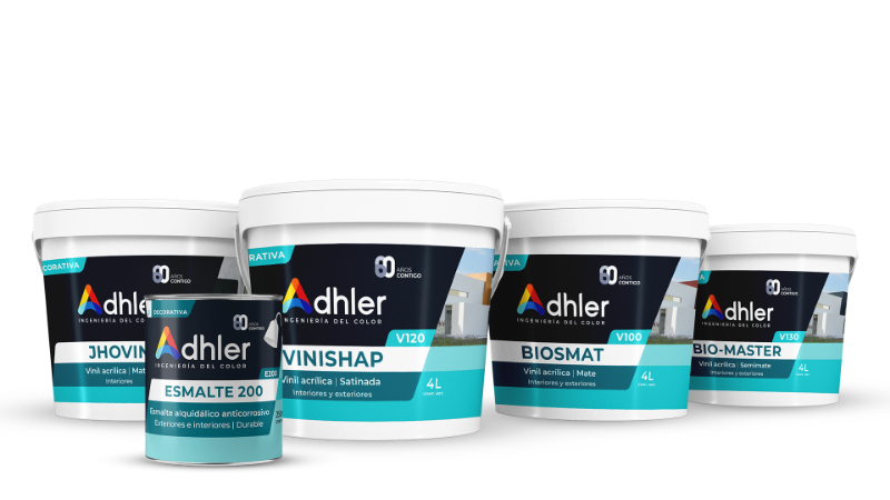 Pinturas Adhler, se coloca como un ícono en la ingeniería del color, con 60 años de experiencia y 4 líneas de producto, distinguidos por su calidad, desempeño y resistencia.